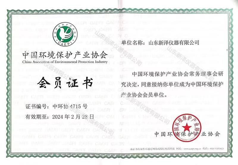 通過嚴(yán)格的資料審核以及業(yè)績評估,山東新澤儀器有限公司經(jīng)中國環(huán)境保護產(chǎn)業(yè)協(xié)會常務(wù)理事會研究決定,正式成為中國環(huán)境保護產(chǎn)業(yè)協(xié)會會員單位。