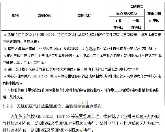 5.2.1.2橡膠制品工業排污單位有組織廢氣排放監測點位、監測指標及最低監測頻次按照表3執行。