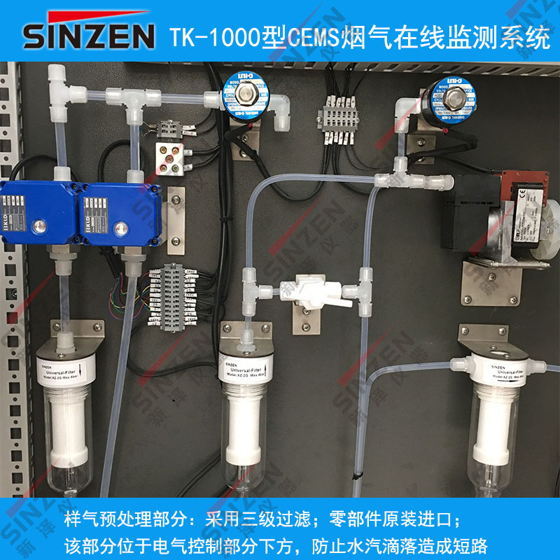 備注:被測(cè)氣體進(jìn)入分析儀表前,需過(guò)濾去除粉塵和水蒸氣,依次為:氣態(tài)污染物采樣探頭內(nèi)的陶瓷或不銹鋼過(guò)濾器,預(yù)處理機(jī)柜內(nèi)1~2處過(guò)濾器。正常情況下,分析儀采樣流量一般在1~2L/分鐘。