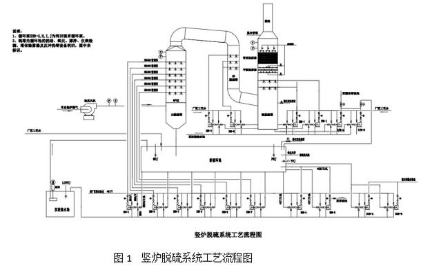 (6)脫硫副產物為石膏,方便綜合利用。豎爐脫硫系統工藝流程圖: